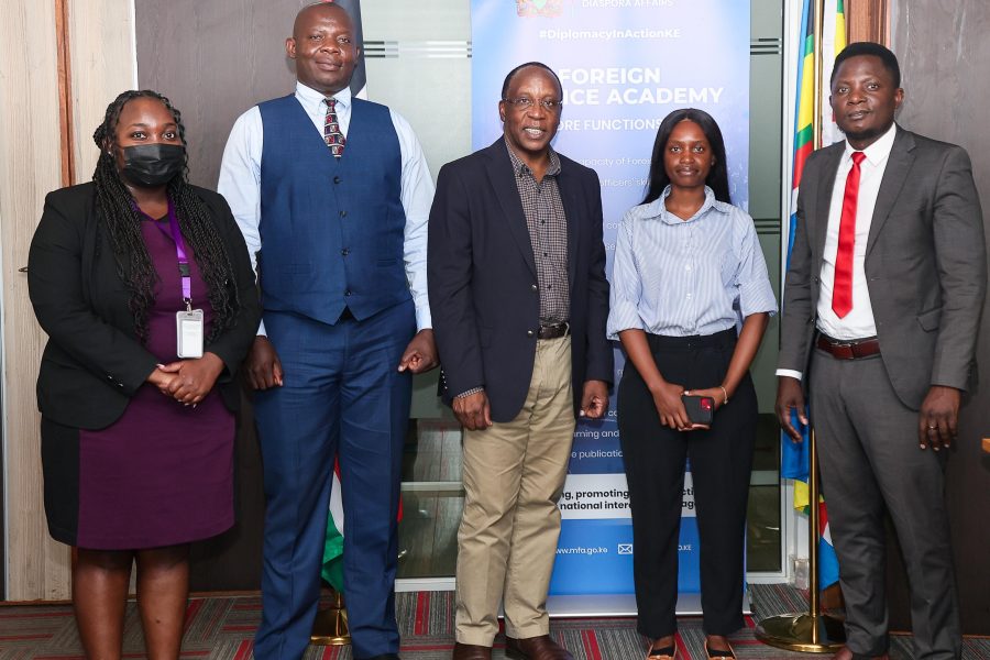 The Foreign Service Academy and the Kenya Cybersecurity and Forensics Association (KCSFA) are exploring strategic collaboration in cybersecurity training, knowledge exchange, and the advancement of digital diplomacy initiatives within the foreign service. The partnership under discussion is expected to support capacity-building programmes targeting diplomats and technical officers, focusing on cybersecurity awareness, incident response, and safe digital communication practices. During deliberations held at the Academy, Amb. Patrick Wamoto- the Director-General observed that as diplomacy continued to evolve in the digital era, there was a growing demand and urgency for officers to be well-equipped to manage cyber risks and leverage technology in international engagement. Mr. Keniz Agira, Chairman of the Kenya Cybersecurity and Forensics Association (KCSFA) welcomed the initiative, describing it as a forward-looking step that would not only enhance Kenya’s cybersecurity posture but also strengthen the protection of diplomatic communication and data systems. Present during the deliberation was Ms. Valentine Kiriaku, Acting Head of ICT at the Academy.
